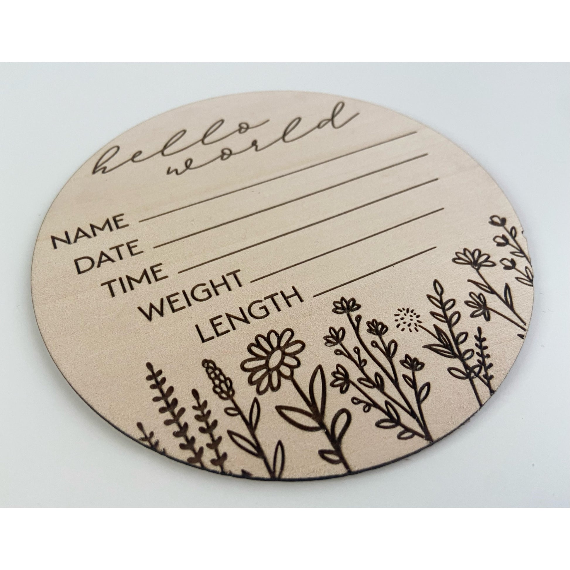 Hello World Floral Birth Announcement